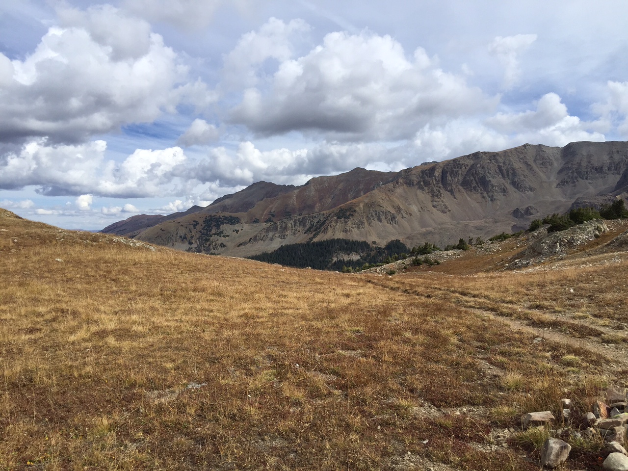 The next 2 miles after hitting the New Castle Buford road were so enjoyable. The road was fairly flat, with just a few gradual ups and downs. I was able to look over the vast country of beautiful mountains covered in all the fall colors as I made my way onward. Each step seemed effortless when my mind focused on the beauty… until it hit me. The climb started and kept going and going. It didn’t look like much of a grade but after 5 miles of climbing and playing cat and mouse with Marcus and Vaughn in Big Blue, I finally had to just sit down. Marcus (and Tory today) immediately had cameras in my face to capture what they knew was a vulnerable moment. Most days I can handle this as I know it’s his job, but this wasn’t one of those days. I was so irritated and tired that a seemingly simple grade was kicking my butt. Then I was reminded that I was at 10,000 feet, I had climbed all day the day before and I pretty much only ate soup yesterday. I didn’t have an option though, I had to keep going.