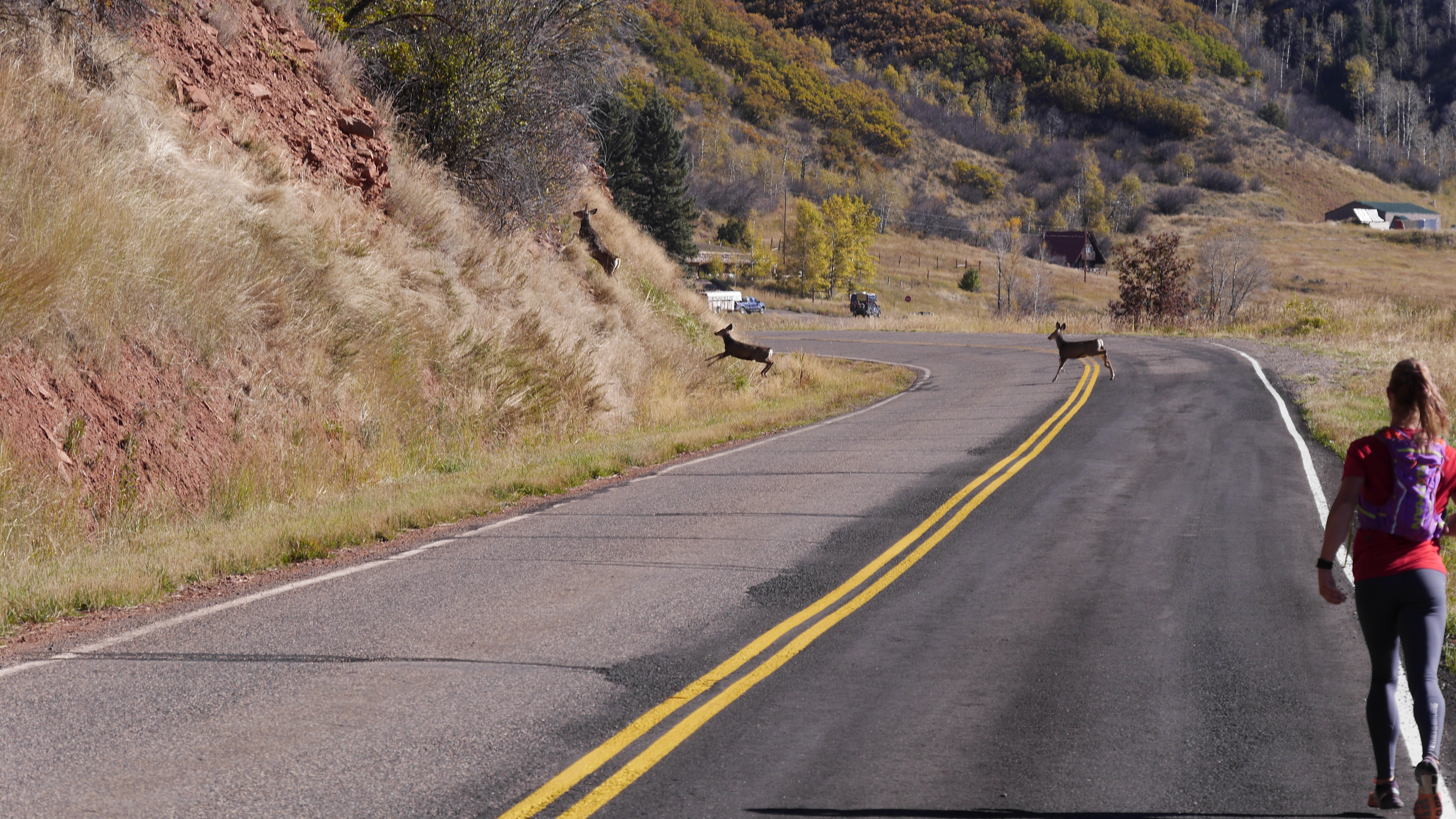 As I ran along, taking in my surroundings and trying so hard to distract myself from the fatigue in my legs and the pain in my feet, my heart skipped a beat and then began to race with joy. Maybe 50 yards in front of me, 3 deer crossed the road. Their agility and grace is astounding. They climbed the steep hill on the other side of the road and disappeared in the oak brush. With a smile on my face, I continued up the road and memories of my childhood in these woods ran through my head all day.