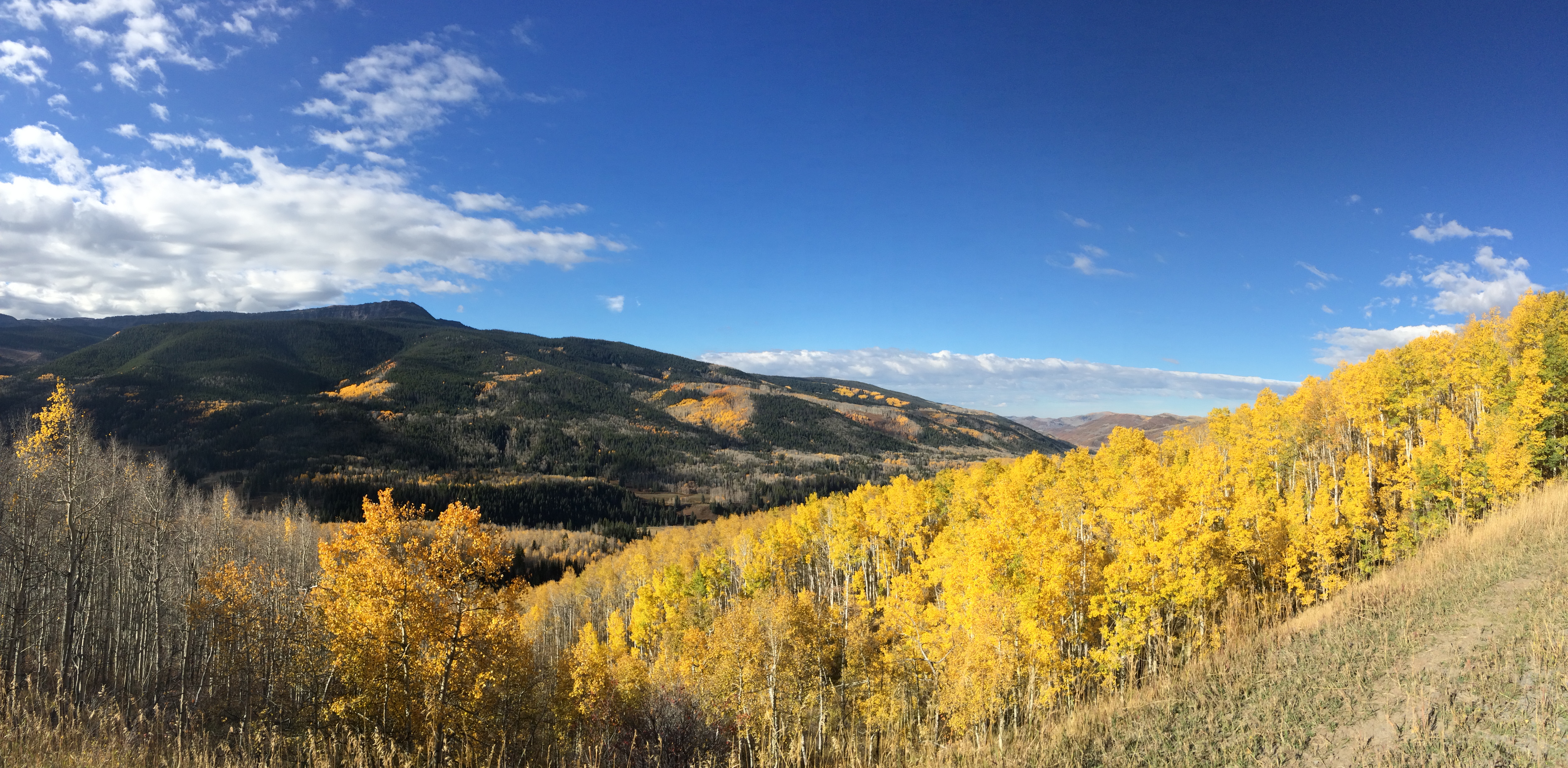 The view was spectacular. On the run I was thinking about how much the terrain has changed everyday of the run for the most part. I’ve been on everything from the side of highways in the high desert to mountain passes in the aspens and pines to trails full of rocky shale slides above treeline. Today was some of my favorite. Expanses of fall colored aspens and oak brush intertwined with spruces and pines lining the edges of golden meadows. The sun had crested the hills, spilling raise of sunshine on the day.