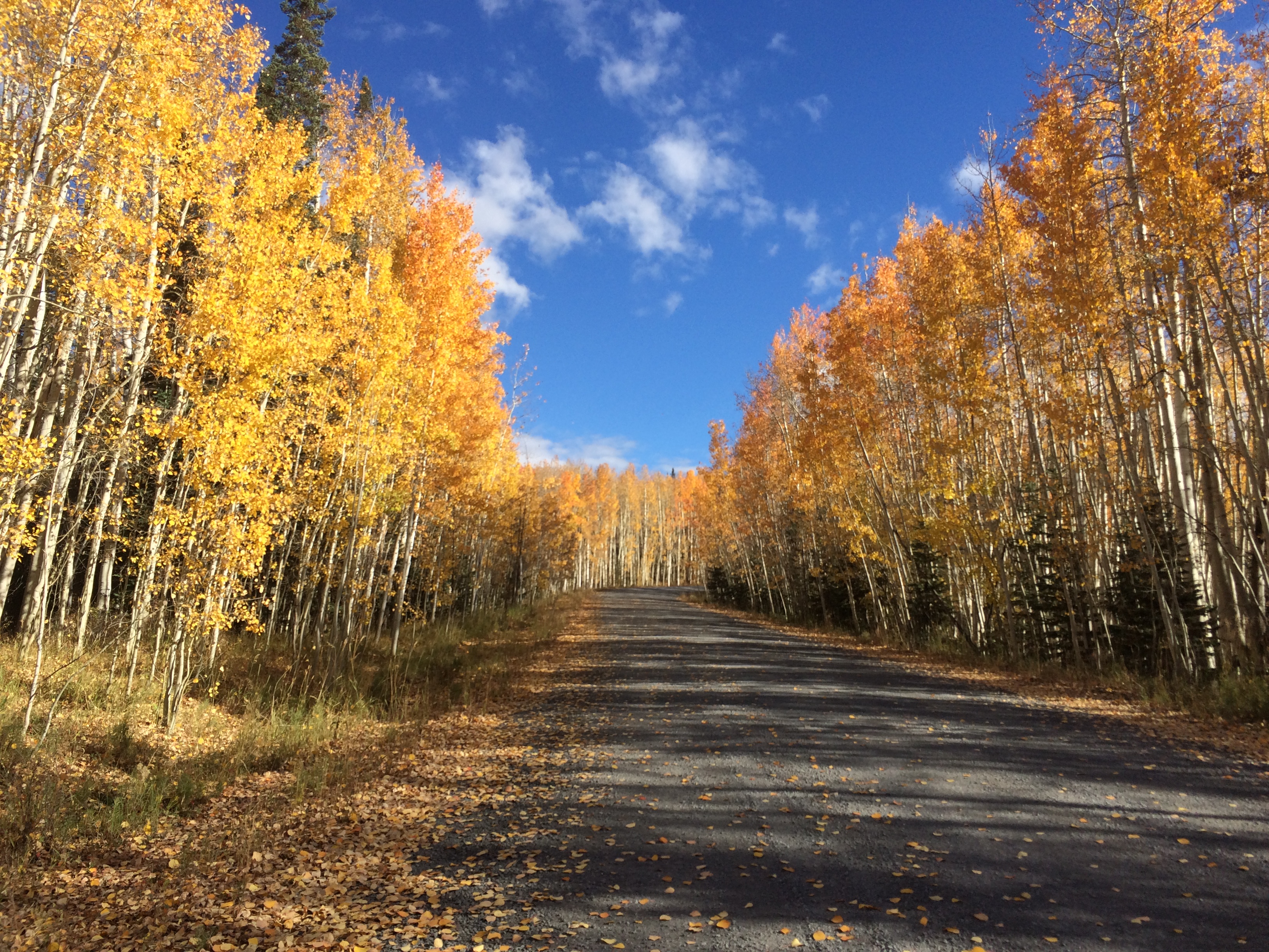It was inevitable though, after about 10 “goodbye” hugs to dad, he turned right out of the campground and we turned left. Sitting in the back of Big Blue, I cried so hard as I saw his red Dodge drive away. I felt like a child again. In the rear view mirror, I could see tears pouring down Tory’s face as she drove me away from my dad. Our emotions were wild, but it was time to continue my mission to Move Mountains. In the literal sense, today I was climbing another mountain. With about 4 miles of a gradual climb to Ripple Creek Lodge, the road took a deep bending left turn and the real climb started. Ripple Creek Pass was a 6-mile continuous climb of gravel road switchbacks. I was pleasantly surprised that I was able to run most of it. Typically my uphill trick is to look just in front of my feet, that way it doesn’t seem as steep. However, the colors as I ran over this pass were too vibrant to let my eyes look at the dirt for too long. I know I keep saying it, but the yellows, oranges and reds were more beautiful than words can describe or pictures can capture.