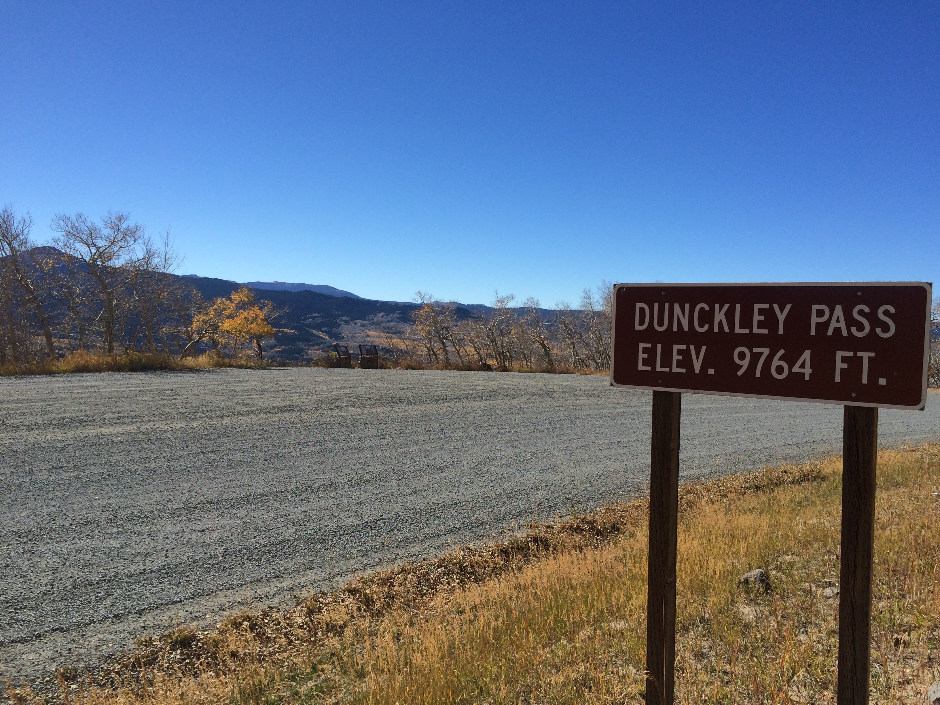 I finally made it to the top! The summit sign read, Dunkley Pass 9764ft. I stopped for a minute to look back at what I had come over. I could see the end of the initial 5-mile downhill followed by the pass I had just climbed. I had a moment of pride. A moment of, “holy cow, I’m actually doing it”.