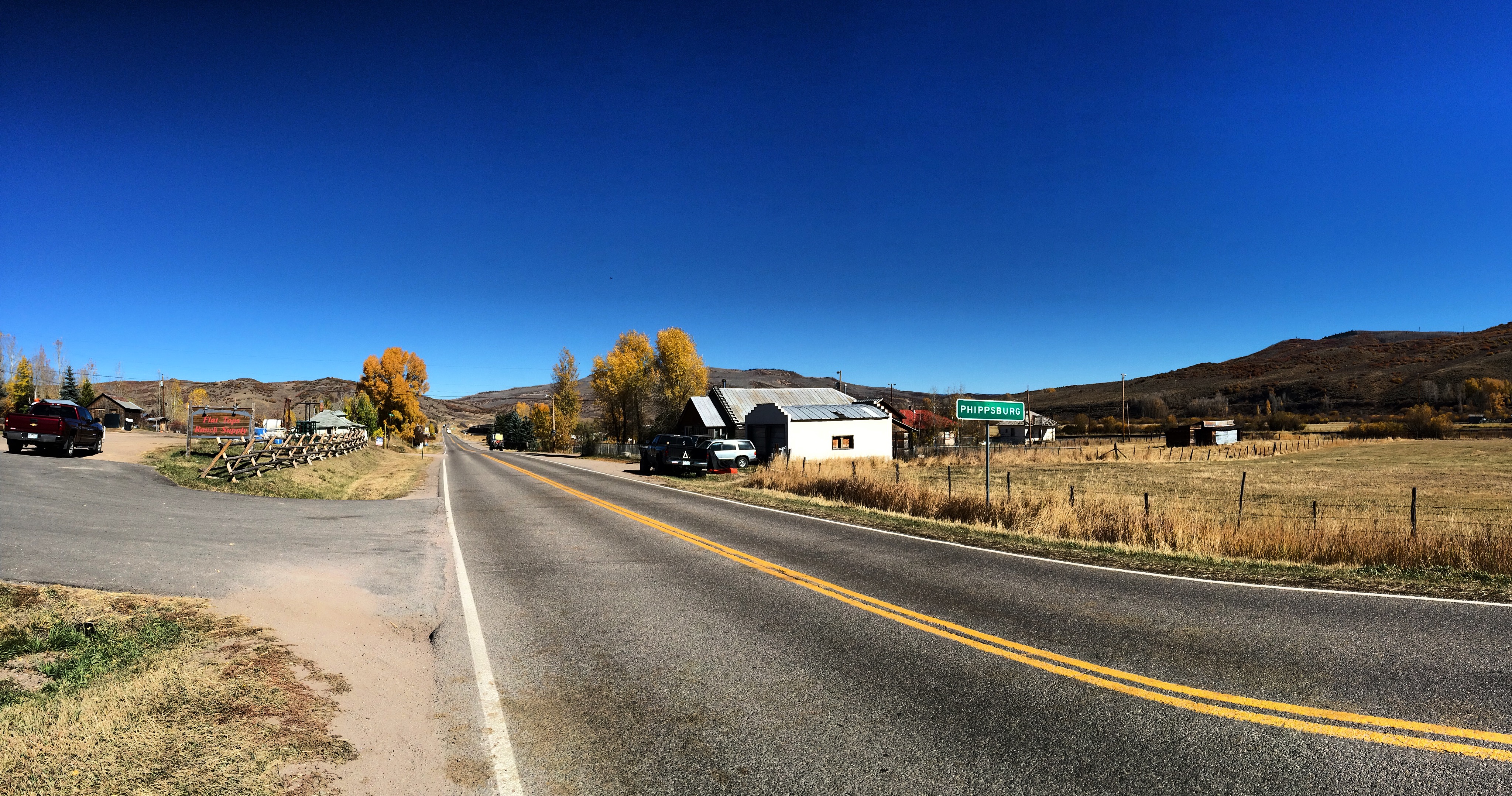 As we were nearing Phippsburg, we started to see some amazing old barns and rustic cabins that were still inhabited, but very run down. We were getting out of the thick of the hills and into the ranch and farm lands. Real cowboy country. As I crested a small hill, there was a horse to my left up against the fence bordering the road. Typically, horses and mules bolt when they see me coming. But this good ol’ boy just stayed there watching me. I took it as a perfect opportunity to take a break. I picked some dead grass off the side of the road and let the horse munch it out of my flat palm. Then, I spent a few minute giving it a good pat down and rub between the eyes. What an amazing creature.