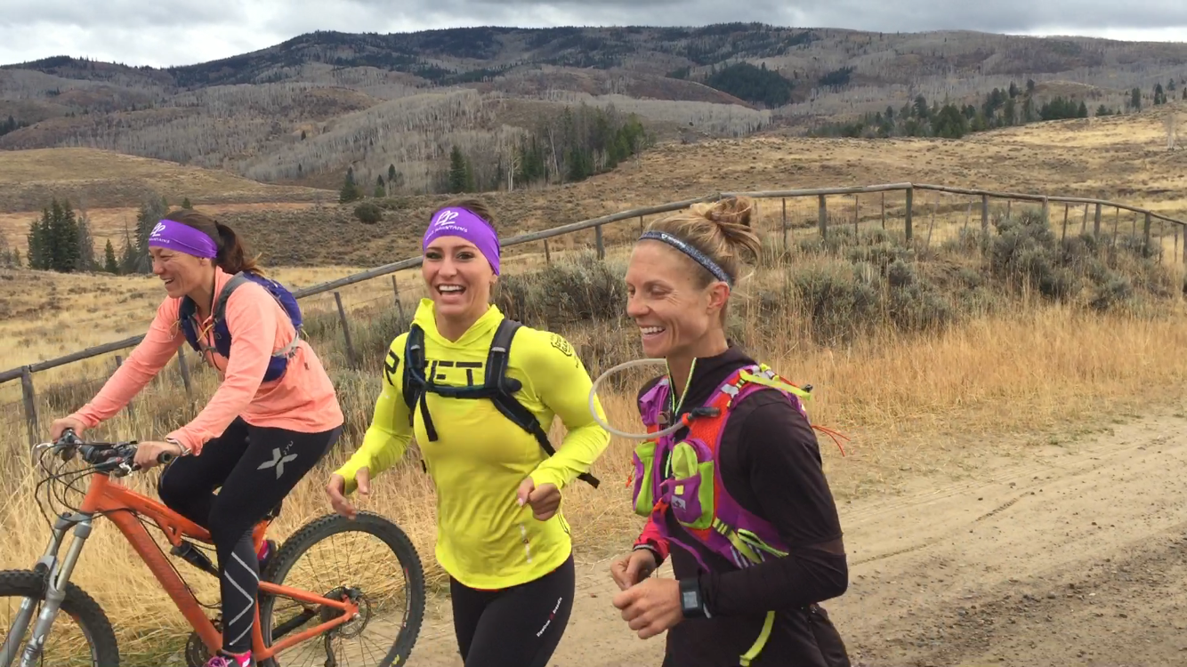 The fatigue from lack of sleep was overcome by the energy and excitement the moment we stepped into CrossFit Steamboat. It was just before 8am and the room was covered in purple shirts, purple balloons and smiling faces. Sarah Coleman and her team had brought together members of their CF community, kids from “Girls on the Run”, athletes from the high school cross country team and supporters from the Steamboat community to run out of town with me. Sarah I stood tall on plyo boxes overlooking the abundance of people. I was overwhelmed with appreciation as Sarah introduced me and Move Mountains. I then gave a short speech and introduced the Move Mountains team. After a few tears of joy shed (I swear I can’t keep my eyes dry for nothin’), we headed out the door with a sea of purple balloons flying high around us. The love I felt put a permanent smile on my face for the day.